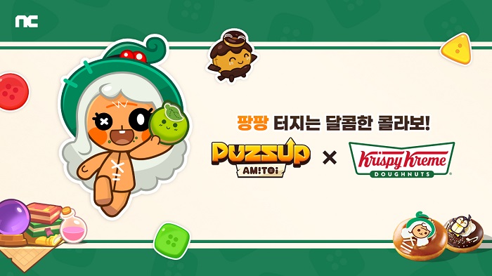 ... 엔씨(NC)는 크리스피크림 도넛과의 컬래버레이션을 기념해 이벤트를 진행한다. 퍼즈업 도넛 단품 혹은 도넛이 포함된 하프 더즌, 더즌 제품 구매 시 한정 스킨 및 게임 아이템을 얻을 수 있는 스크래치 쿠폰을 지급한다. 퍼즈업은 3매치 방식의 퍼즐 게임으로 떨어지는 블