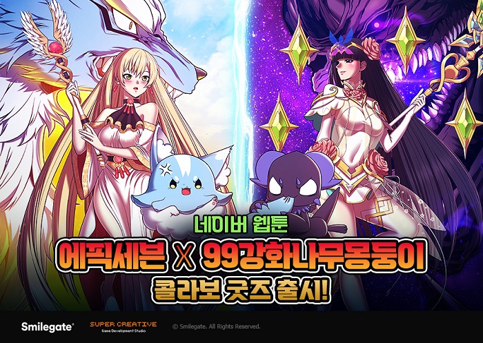 ... 각 굿즈는 ‘지페리’ 작가가 직접 그린 아트웍으로 한정 수량 제작되며 서로 의상을 바꿔 입은 구구몽과 에픽세븐 등장 인물들이 재미있게 표현되어 있다. 굿즈의 판매는 10월 14일 오후 2시부터 스마일게이트의 공식 온라인 굿즈샵인 ‘스마