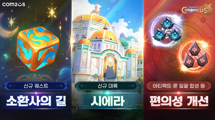 ... ‘수호의 방’은 소환수의 봉인을 풀기 위한 자격을 증명하는 내용을 담고 있으며, ‘라힐트메어’는 시시각각 다가오는 마력 폭풍을 막아내고 시에라를 지키는 콘셉트의 던전이다. 이와 더불어 신규 5성 소환수인 불 속성 하프술사도 추가됐