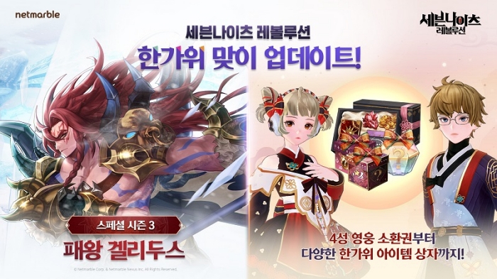 ... 10월 18일까지 ‘풍성한 추석 되세요’ 이벤트를 통해 이용자는 1일차에 추석 맞이 특별 헤어 장식 ‘킬러바니 헬멧’을 획득할 수 있으며, 추가로 출석 일수에 따라서 ‘몬스터 코어 11회 소환권’, ‘프라