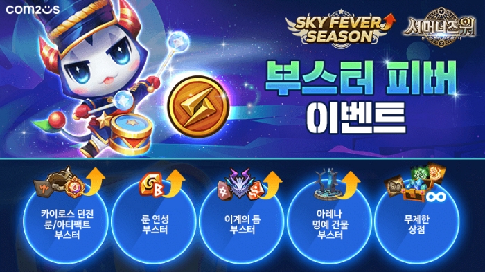... 먼저 ‘부스터 피버 이벤트’는 ‘서머너즈 워’를 플레이하며 ‘피버 토큰’을 모으면 성장에 필요한 여러 아이템을 획득하거나 강화할 수 있는 이벤트다. 피버 토큰을 사용해 카이로스 던전에서 원하는 룬&mid