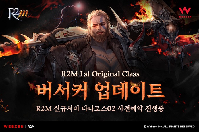 ... 웹젠은 오늘 업데이트를 통해 R2M의 새로운 클래스 '버서커'를 공개한다. '버서커'는 강한 힘과 체력을 바탕으로 기존 클래스보다 뛰어난 공격력을 지녀 근접전에 특화됐다. MP(마력) 대신 신규 자원인 '분노 게이지'를 활용하며