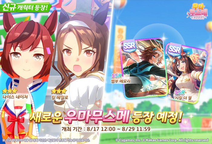 ... 이와 함께, 서포트 카드 2종 ‘SSR [전해져라, 이 마음!] 뱀부 메모리’와 ‘SSR [그 응원은 세계를 바꿨다] 시킹 더 펄’을 업데이트해 육성의 재미를 더했다. 여기에, 17일부터 29일까지 새로운 한정 스토리와 보상