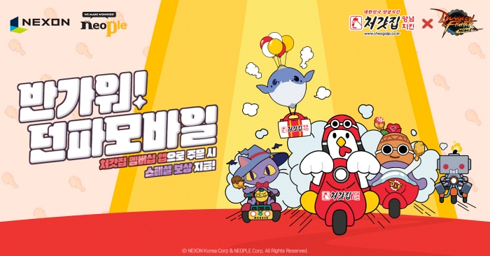 ... 이벤트 기간 동안 던전 입구 곳곳에 배치된 ‘처갓집 양념치킨 트럭’과 대화하거나 던전 내 등장하는 ‘처돌이’를 처치할 시, 모험단당 일 최대 20개의 ‘처갓집 양념치킨’ 아이템을 얻을 수 있다. 해당 아이템을 통해