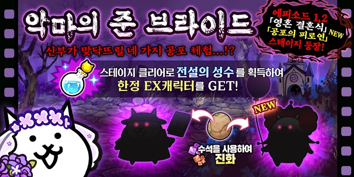 ... ‘전설의 성수’를 모아 제3형태 ‘냥소시스트’로 진화하는 ‘오래된 알: N201’과 ‘고양이 삐에로’로 진화하는 ‘오래된 알: N203’ 등을 획득할 수 있다.