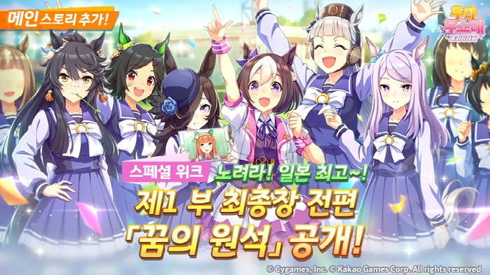 ... 이와 함께, 서포트 카드 2종 ‘SSR [마력을 받은 영웅] 젠노 롭 로이’ 및 ‘SSR [사랑스러운 그대, 귀여운 그대] 카렌짱’의 픽업을 진행해 육성의 재미를 더했다. 또한, 메인 스토리 제1 부 최종장 ‘꿈의