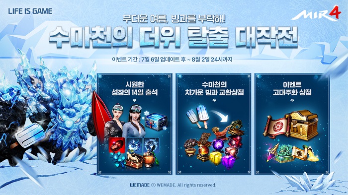 ... ‘시원한 성장의 14일 출석’ 이벤트는 8월 2일(수)까지 열린다. 출석 일자에 따라 ‘푸른 바다 물안경’ 코스튬, ‘전설 묵령초’ 등 다채로운 아이템을 선물한다. 출석 14일 차에는 ‘영웅 청룡
