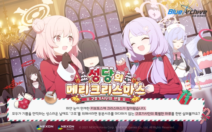 ... 이와 함께 신규 학생 2종을 추가했다. ‘세리나(크리스마스)’는 ‘트리니티 종합학원’ 소속 관통 타입 스트라이커 학생으로, ‘EX 스킬: 축복의 울림’ 사용 시 자신을 제외한 원형 범위 내 아군의 치명 대미지