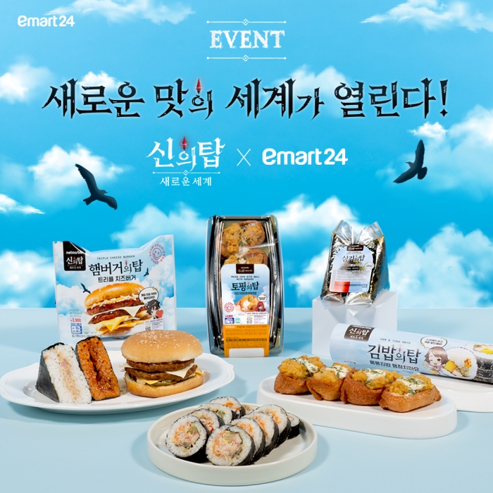 ... 특히, 이번 콜라보레이션 상품들은 높은 탑을 콘셉트로 거대 사이즈로 제작됐다. 김밥 길이는 총 25cm로 이마트24 김밥상품 중 최장 길이며, 삼각김밥은 대형 삼각김밥 2종을 제공하며, 햄버거는 패티 2장, 치즈 3장으로 풍성하게 구성됐다. 모든 상품에는 <신