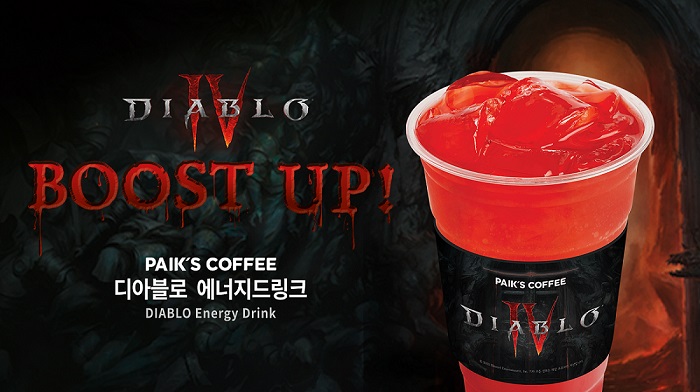 ... 빽다방의 신메뉴 ‘디아블로 에너지드링크’는 디아블로 IV 세계관을 경험하고 즐길 수 있도록 디아블로 내 ‘치유 물약’을 모티브로 개발됐다. 체내 흡수가 빠르고 피로회복에 도움을 줄 수 있는 레드 컬러의 카페인이 함유된 레몬맛 스포