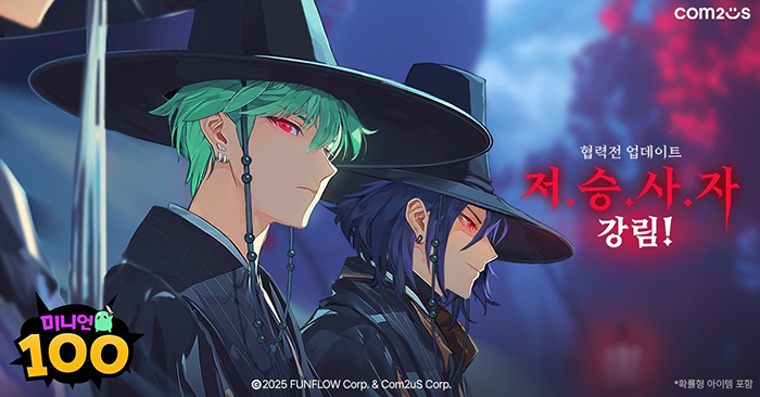 ... ‘미니언100’의 모든 소환사 6종과 소환사별 미니언이 저승사자 룩으로 등장하고, 컬래버 캐릭터인 잔망루피도 전통 갓을 쓰고 합류해 기존 귀여움과는 또다른 반전 매력을 선보인다. 협력전은 이벤트 기간 동안 저승 테마로 조성되며, 누적 플레이 횟수