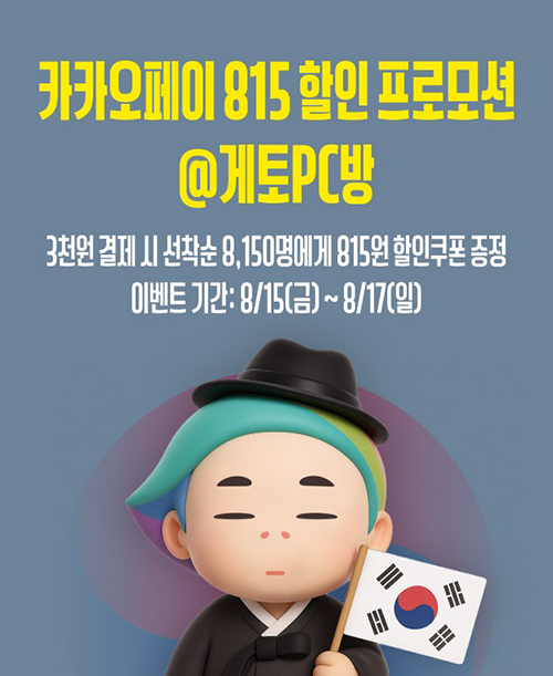 ... 이벤트는 15일부터 매일 오전 8시 15분부터 시작되며 3일간 매일 1인당 1회 참여 가능하다. 엔미디어플랫폼 관계자는 “이번 광복절 연휴를 맞아 PC방 시장 활성화를 위해 프로모션을 기획하게 되었다”라며 “접근성과 편의성이 높은 카