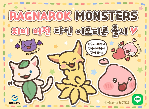... 라그나로크 몬스터즈치비 Ver. 는 라그나로크 몬스터즈를 치비(Chibi) 스타일로 변형해 귀엽고 캐주얼한 매력을 한층 살렸으며 트렌디한 느낌을 부여해 라그나로크 IP 이미지를 리프레시 하는데 중점을 뒀다. 일상 속에서 자주 접하는 다양한 상황과 표현을