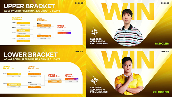 ... 먼저 첫 날인 3일 8강부터 SCHOLES, ZZI-SOONG, PURE. LUCK, ZDOL 등 전통강호들이 빠르게 승리를 선점했다. 이중 2017년 월드 파이널 진출자 ZDOL, ‘서머너즈 워 한일 슈퍼매치2023’ 한국 MVP 출신 SCH