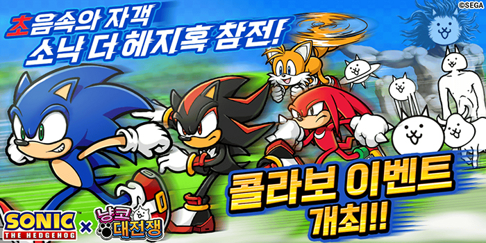 ... 콜라보 기간 동안 ‘소닉 더 헤지혹’의 캐릭터들이 등장하는 콜라보 한정 스테이지가 개최된다. ‘그린 힐’ 스테이지를 클리어하면 콜라보 한정 레어 캐릭터 ‘고양이 소닉’을 획득할 수 있다. 그