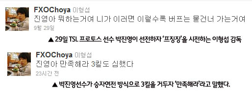 ... 곰TV 방송리그 최초로 2대2 팀전 중계가 나가기도 했으며 고려대 측 응원을 맡은 황영재해설과 연세대 측을 대변하는 채정원해설의 입담이 빛났다. 이 특별대회를 기획한 장세완(고려대 04학번)씨는관중석 맨 앞에서 선수들의 동선을 지시하고 리액션을 이끄는 등 정신없는 하루를 보