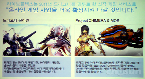 ... '드라고나'는 내달 20일 사전공개서비스를 시작하며 CJ인터넷과 전략적 제휴를 통해 채널링 서비스, PC방 사업 및 마케팅 공동 진행 등을 협약했다. 양사는 드라고나를 성공적으로 서비스 후 긴밀한 사업 협조를 이끌어낼 계획이다. '모스'와 '키메라'는 무협과SF MMOR