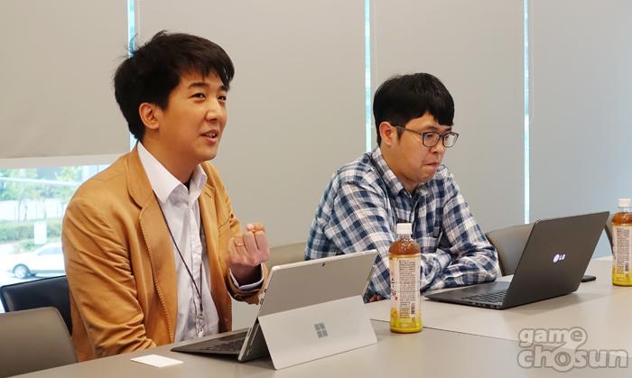 ...특히, 이번 업데이트에 맞춰 '룬의아이들' 3부가 출간될 예정이기 때문에 '테일즈위버' 이용자들에게는 뜻깊은 업데이트로 다가온다. (왼쪽부터) 장경한 디렉터, 이승보 기획 팀장 = 게임조선 촬영인터뷰를 통해 만난 '테일즈위버'의 장경한 디렉터와 이승보 기획 팀장은 "드디어 다음 단