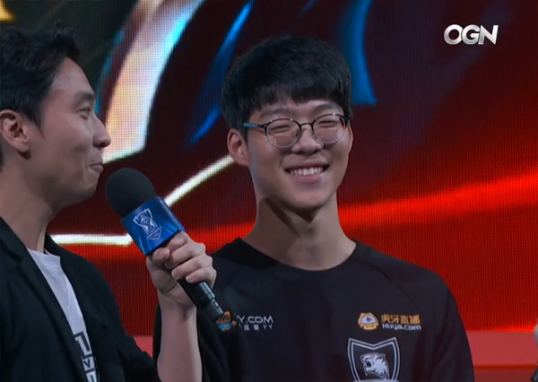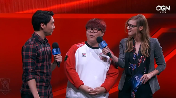 ...김종인은 승리 인터뷰에서 3세트 패배에 대해 '프레이' 김종인은 "피오라는 (송)경호가 자신감에 선택한 챔피언이었다"라며 "경기가 뜻대로 안풀리자 나중에 미안하다고 하더라"고 말했다. 4강서 만날 SKT에 대해서는 "우승하기 위해 반드시 거쳐야할 상대"라며 "결승전에서 만나야할 팀