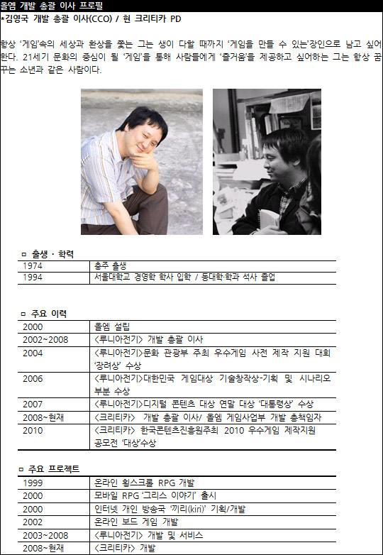 ... 지난 1차 비공개 테스트(이하 CBT)에서 본인들이 만들고 있는 크리티카의 액션성을 검증받은 이후 액션을 더욱 돋보이고 보조해줄 다양한 콘텐츠 확보에 많은 시간을 들였다는 김영국 이사는 "이번에는 많은 스테이지를 만들었고, 지난번 테스트했던 액션 이외의 다양한 콘텐츠 개발에 집
