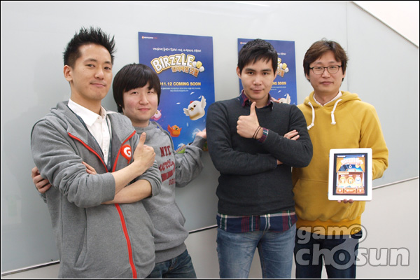 ... 캐릭터 디자인을 담당하신 분도 오신다고 해서 귀여운 미녀 개발자를 기대했으나(?) 약속 장소에 나타난 사람들은 모두 남자! ▲ "여직원 그런거 없다, 모두 남자들이 만든 게임이다!!!" (왠지 스파르타!!) 아아, 그랬던 것입니다. 엔필에는 여자 개발자가 없다는 것! 하