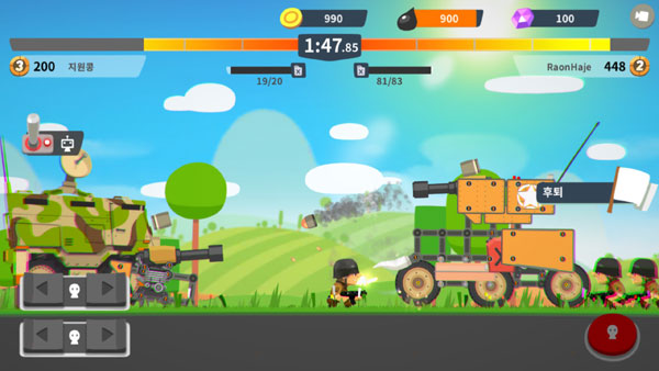... ◆ 게임 내 시설물 소개 '격납고'에서는 탱크의 제작이 이뤄진다. 레벨이 올라갈수록 더 많은 탱크의 제작이 가능하다. '지휘차량'은 전투의 핵심요소로 전투시 플레이어를 돕는 각종 유닛들을 보급한다