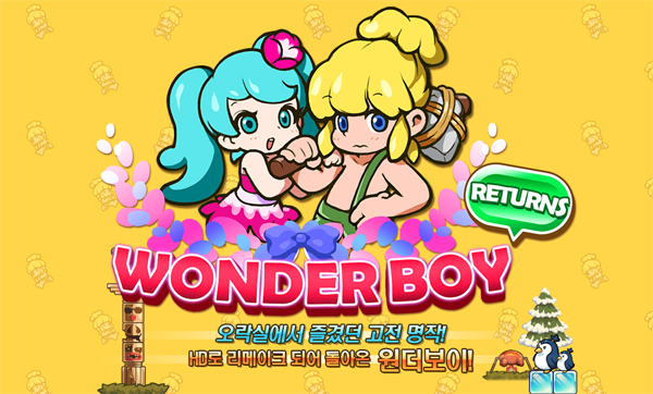 ... 직관적인 플레이 방법과 절묘한 난이도로 당시 높은 인기를 구가했으며 이후 다양한 기종으로 이식되며 비디오 게임의 한 시대를 풍미했다. 리메이크되는 원더보이리턴즈는 원작을 잘 모르는 신규 유저에게 친근하게 다가갈 수 있도록 주인공 및 티나, 각종 몬스터들을 최신 트렌드에 맞춰