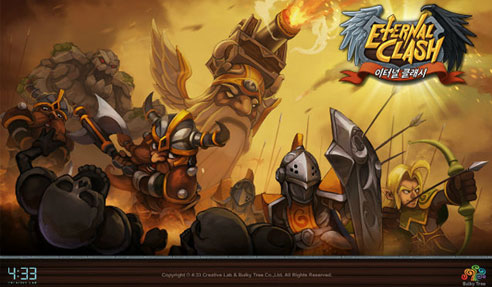 ... 네시삼십삼분(대표 장원상)이 서비스하고 벌키트리(대표 김세권)이 개발한 모바일 게임 이터널클래시는 국내 서비스 시작 삼일 만에 구글플레이 인기 앱 순위 1위에 올랐으며 매출에서는 43위를 기록하는 등 꾸준한 상승세를 타는 중이다. 직접 플레이해 본 이터널클래시는 영웅 조