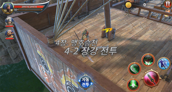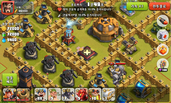 ... 전략모드는 RTS, 공성모드는 SNG(소셜네트워크게임)바탕인데 전혀 다른 장르다 보니 두 개의 게임을 동시에 즐기는 듯한 재미를 준다. ◆ 치열한 두뇌 싸움 전략모드 전략모드는자원을 캐서 장수와 병사를훈련하고 이를 이용해적 진영에 쳐들어가 적의 궁궐을 파괴하는 모드다.