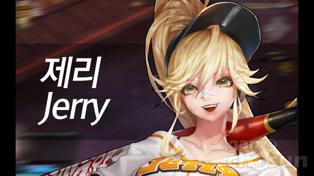 ... ▲ 웃는 모습이 매력적인 제리 이러한 제리의 선수 콘셉트는 일러스트에서 잘 나타나있다. 이상 등급(Lv. 20) 4번타자의 외형은 리폼하여 노출도가 급상승한 야구복에 탱크탑, 짧은 핫팬츠를 받쳐 건강한 섹시미를 살렸고, 사고 등급(Lv