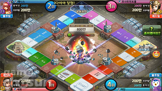 ... 또 기존 모두의마블 규칙 속에서 좀비킹을 처치하면 인간 '모두 승리'한다는 규칙이 더 추가된 것도 특징이다. ▲ 모두의마블 신규 '좀비맵' 업데이트, 좀비킹이 등장한다 만나면 좀비로 감염! 좀비맵은 시작과 함께 좀비킹이 유저와 반대 방향으로 이동을 시작한다. 그리고 이