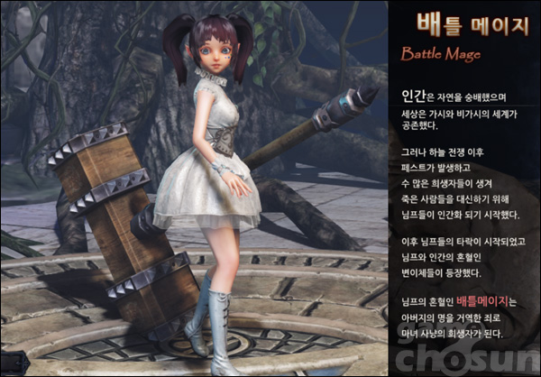 ... 물론, 메이지라는 이름을 달고 있는 만큼 원거리 형태의 마법도 있어 유저 입맛따라 플레이 스타일을 바꿀 수 있는 캐릭터다. ◆ 가녀린 소녀라고 무시하지 마세요! 애스커 3인방 중 배틀메이지는 가장 가녀린 체형을 하고 있지만, 그 반대로 가장 거대한 무기를 사용하는 캐릭터다