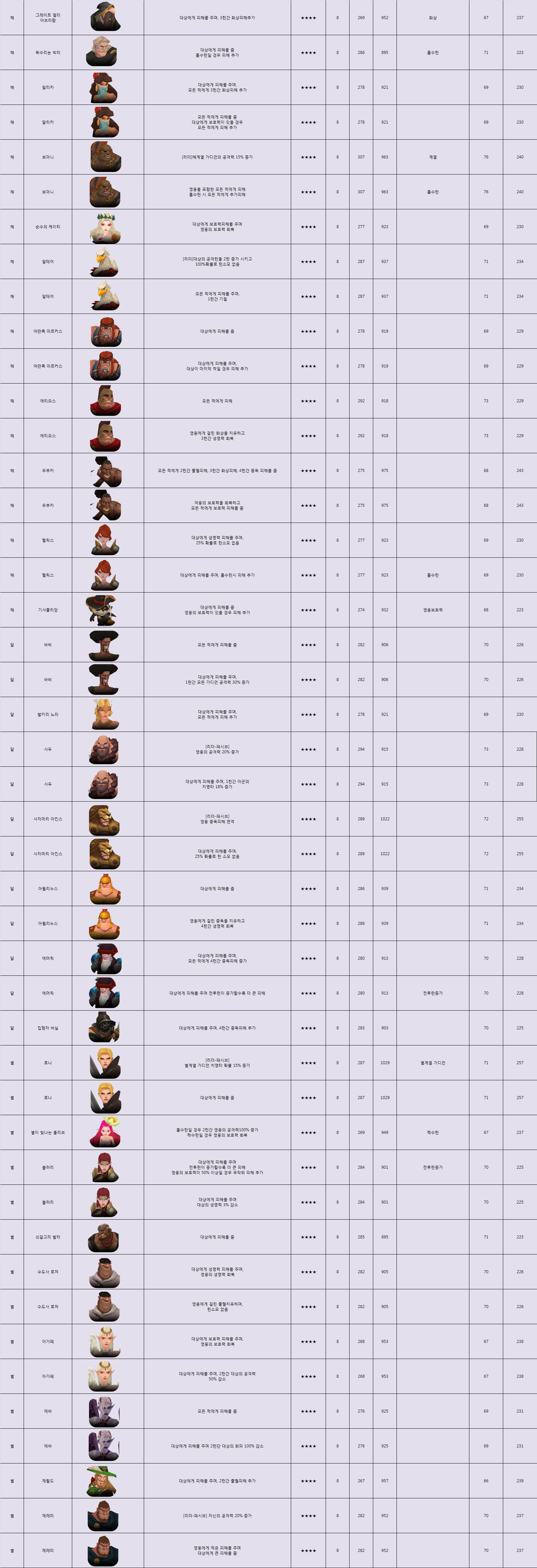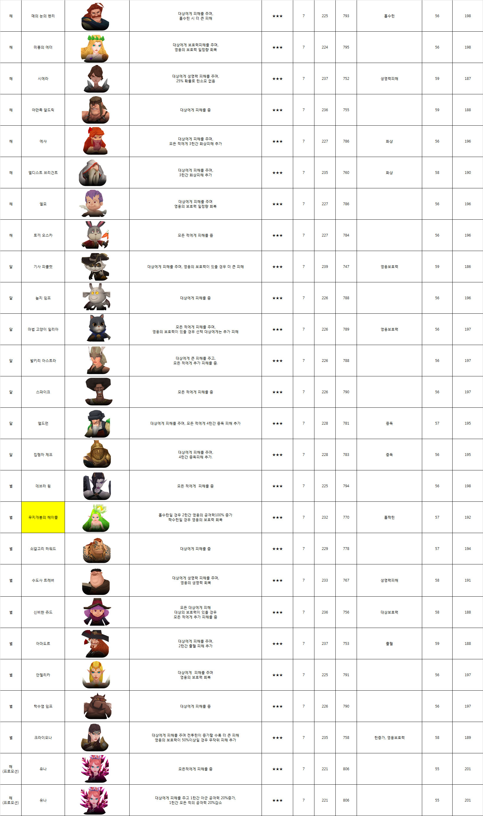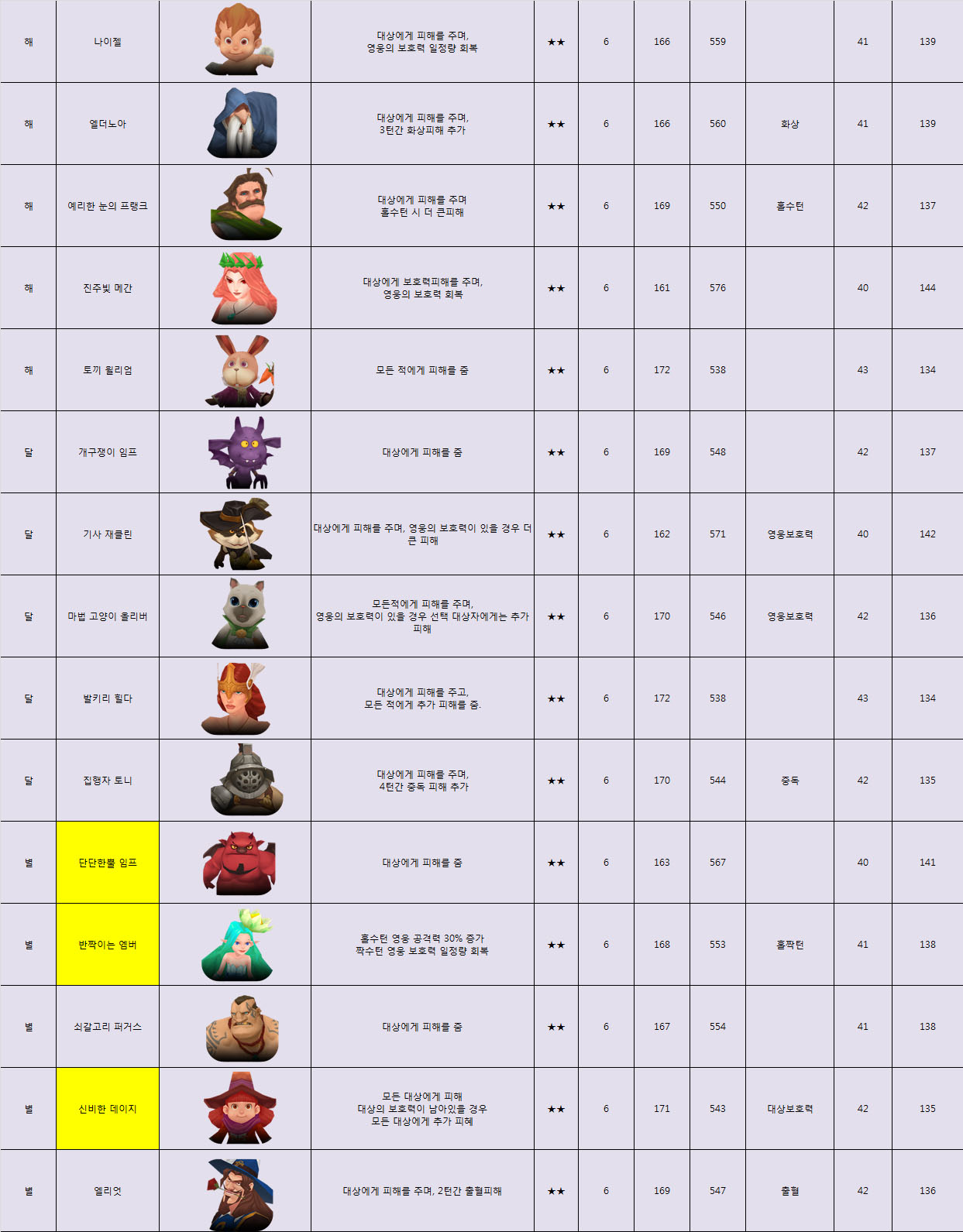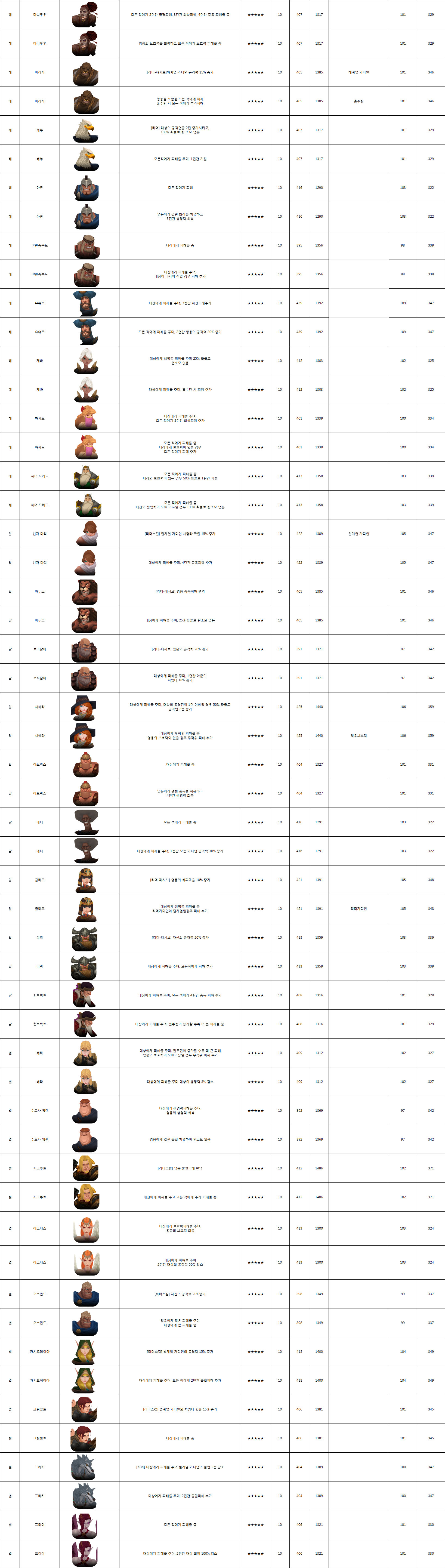 ... 이용자들은 이 가운데에서 자신의 취향에 맞는 하나의 캐릭터를 생성할 수 있다. 각각의 영웅들이 사용하는 스킬들과 스킬레벨에 따른 공격력을 정리했다. [류세나 기자 cream53@chosun