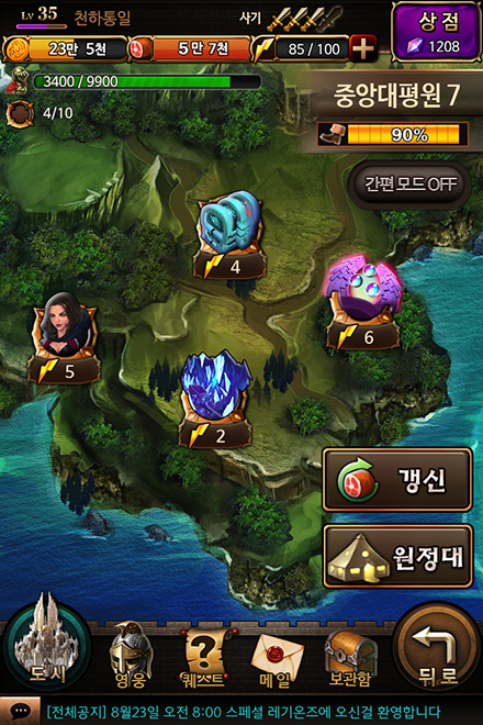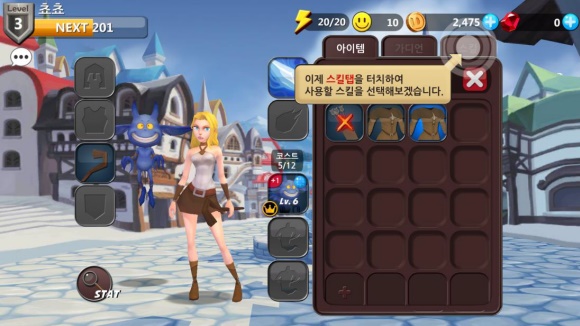 ... ◆ 전투를 위한 기본 준비 '가디언스톤'에는 워리어, 아쳐, 소서리스 등 세가지 타입의 영웅이 있다. 이용자들은 이 가운데에서 자신의 취향에 맞는 하나의 캐릭터를 생성할 수 있다. 우선 영웅을 터치하면 캐릭터 정보 창이 뜬다