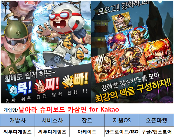 ...co. kr) 등에 기초하고 있습니다. <편집자주> 씨투디게임즈가 지난 9월 30일 '날아라 슈퍼보드 카삼편 for Kakao'(이하 '슈퍼보드 카삼')를 정식 출시했다