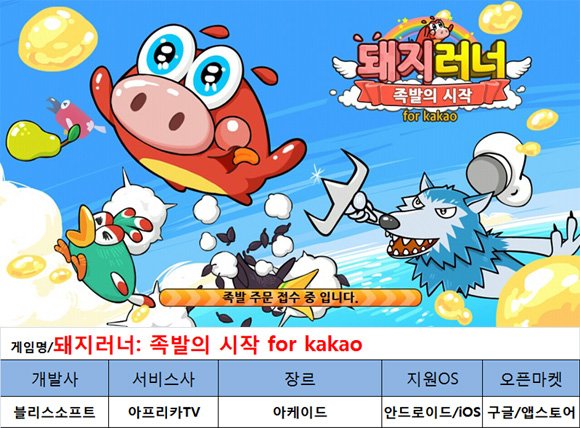 ...co. kr) 등에 기초하고 있습니다. <편집자주>아프리카티비에서 블리스소프트와 연계하여 귀여운 돼지들이 벌이는 아케이드게임 '돼지러너 for Kakao'(이하 돼지러너)를 9월 9일 공식 출시했다