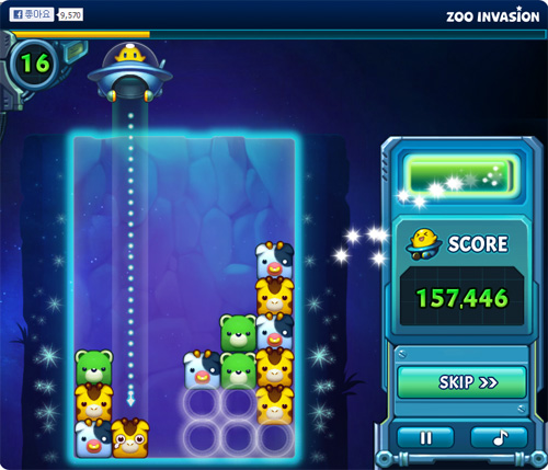 ... 이 게임은 맨 위의 블록을 들어올렸다가 원하는 곳에 내려놓기만 하면 되는 간단한 규칙을 택하고 있다. 동물 종류도 4가지 뿐이라 구분하기 쉽다. 이 게임은 페이스북 게임 '주인베이전'의 스마트폰 버전이다
