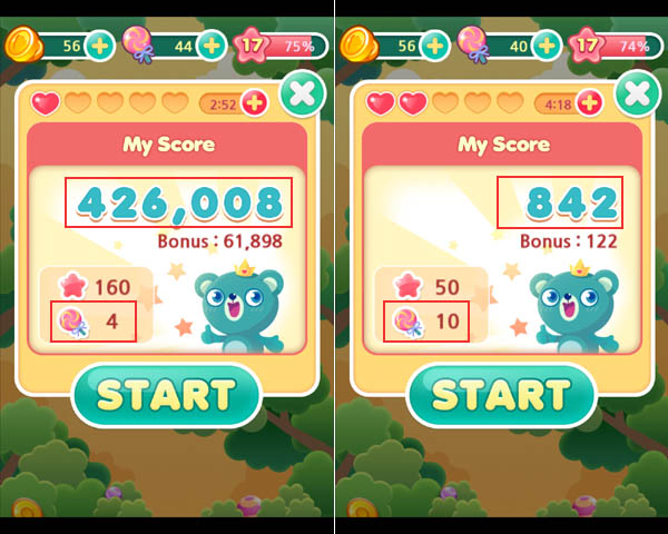 ... 캔디팡의 기본 게임방식은 세 개 이상의 같은 색 퍼즐을 찾아 터트리는 것. 보통은 이를 콤보(연타)로 이어가기 위해 눈에 불을 켜기 마련인데 그럴 필요가 없다. 같은 색 세 개를 찾거나 눈에 불을 켤 필요 없이 그저 화면에 손가락을 마구잡이로 연타하면 된다