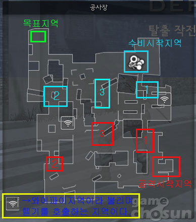... 수류탄, 섬광탄, 연막탄 등이 건물 벽을 이용해 날라오니 주의해야 하며, 석궁을 이용해 상대편을 죽이는 행운을 노릴 수 있으니 노려보자. 와이파이 지역에 진입해서도 3번지역과 적 시작지역에서 적이 나올 수 있기 때문에 헬기를 호출할 때도 주의해야 한다. ▶ 2