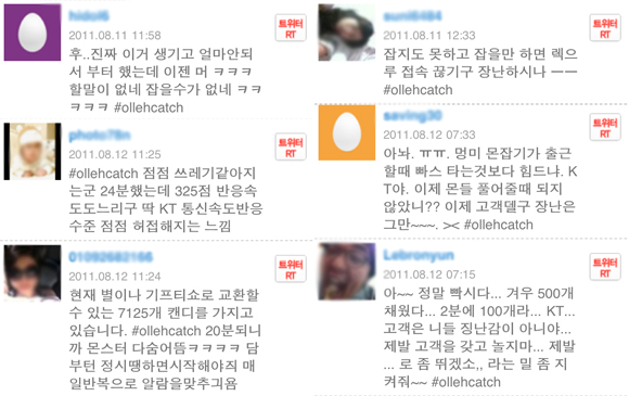 ... ▶ 쉽고 빠르게 손가락 하나로 톡 이 게임은 스마트폰 고객이면 누구나 앱 스토어에서 다운로드 받을 수 있으며, 올레 아이디로 로그인한후메인 화면 하단에 있는캐치아이콘을 누르면 게임이 실행된다. 게임은 GPS를 활용한 위치기반시스템과 스마트폰의 카메라에 비친 영상 위에 캐릭
