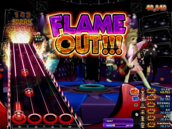 ... 기타아이템은 기타모드에서는 캐릭터가 멋지게 손에 들고 연주하고, 기타모드를 제외한 게임모드나 대기실에서는 등에 매고 다니게 된다. 또 자신만의 기타아이템으로 연주하면 게임 플레이화면도 아래와 같이 변경되고, 기타아이템 중 일부는 게임 플레이 시 보너스 추가 DEN을 획득 할