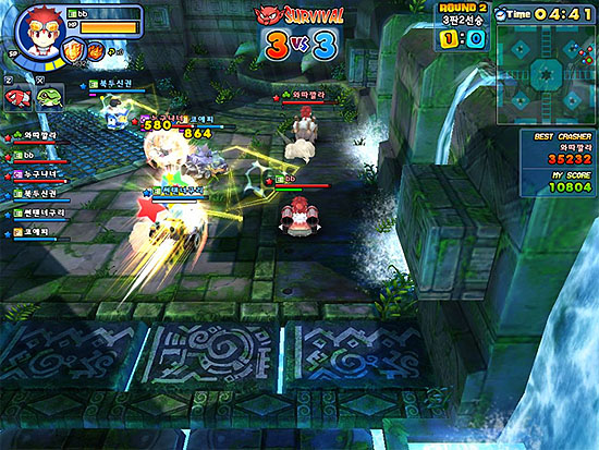 ... 팡이 되기 전까지 동료에게 헬프를 받으면 좀비가 되지 않을 수도 있다. ▶ 좀비모드의 기본 규칙게임을 시작하면 무차별적으로 한 명의 캐릭터가 숙주 좀비에 해당한 좀비킹으로 선정된다. 좀비킹은 긴 팔을 휘둘러 공격을 하는데 체력과 힘이 막강해 웬만한 공격을 받아도 버블 상태가