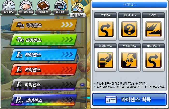 ... ‘카트라이더’는 라이센스 시스템의 재도입을 통해 보다 뛰어난 주행 실력을 향해 수련하는 즐거움을 강화할 계획이다. <사진1. 6개의 등급으로 이루어진 카트라이더 라이센스 시스템> ▣ 초보부터 PRO까지, 본인의