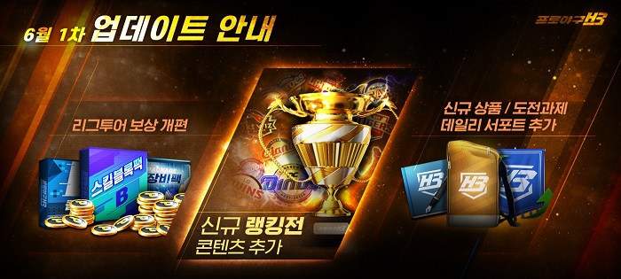 ... 프로야구 H3가 새롭게 선보이는 '랭킹전'은 6월 13일까지 BETA 시즌으로 운영되며 챌린지 메뉴를 통해 입장할 수 있다. 시간에 제약이 없는 기존콘텐츠와 다르게 랭킹전은 매일 오후 9시에서 11시까지만 입장이 가능하다. 일일 10회 무료로 이용할 수 있