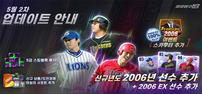 ... 07'시즌에 이어서 새롭게 05'시즌의 선수가프로야구 H3에 등장했다. 05'손민한(롯데), 05'데이비스(한화), 05'문동환(한화) 등 3명의 EX 선수를 필두로 05'시즌에 활약한 많은 선수를 영입해 라인업을 구성할 수 있게