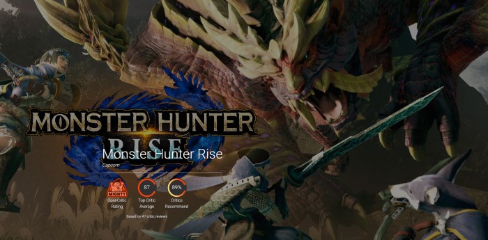 ... 반면 최저점을 준 곳은 오픈크리틱에 집계된 '인버스'로 6점을 기록했다. 인버스의 '젠 글레논'은 무기에 따른 다양한 플레 방식을 긍정하면서도 "몬스터 헌터 라이즈는 다음에 무엇이 있는지 보기 위해수십 시간을 열중하는 게임이 아니다.