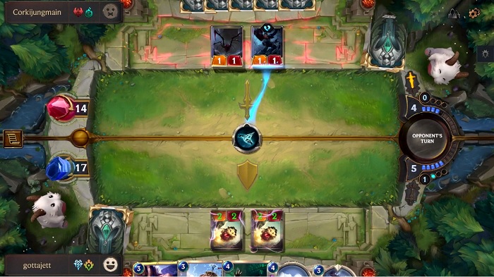 ... 상대가 하수인을 소환했다면 나에게도 하수인을 소환할 기회가 주어지며 상대가 주문을 시전했다면 똑같이 주문으로 맞받아칠 기회가 주어진다. 이는 라이엇게임즈가 기존 리그오브레전드에서 지양하던 '대처가 불가능한 일방적인 게임 구도'를 막는 특별한 시스템이면서 동시