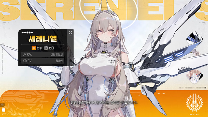 ... 특히, 주 공격 호밍 레이저는 적을 빠르게 유도, 저격하는 느낌의 연출이 특징이다. '세레니엘'은전용 버프 '잔광'은 이를소모해 적에게 높은 강인도 피해를 주고, 격파한 적에게는 추가 피해량을 주는 능력을 지녔