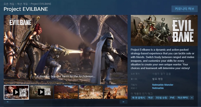 ... 지스타 현장 이벤트 관련 내용은 추후 순차 공개할 계획이다. 절대악으로부터 인류를 구원하기 위한 끝없는 전쟁, 협동 액션 전투 '프로젝트 이블베인' '프로젝트 이블베인'은 넷마블몬스터에서 개발 중인 3인칭