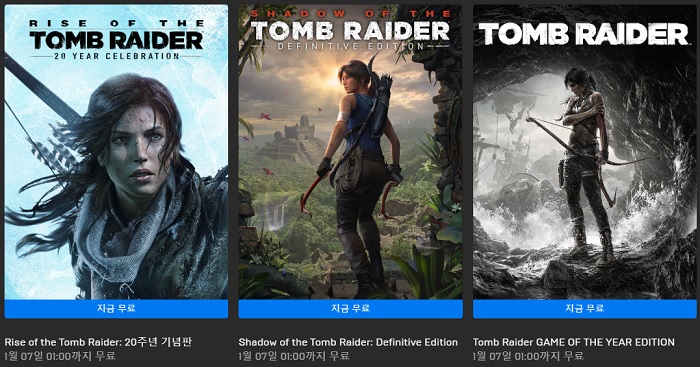... 에픽게임즈는 2019년부터 매년 연말에 매일 게임을 무료 배포하는 이벤트를 진행하고 있다. 배포하는 게임 중에는 비교적 잘 안 알려진 인디게임부터 큰 인기를 끈 명작까지 다수 포함되며 매번 이슈가 되곤 했다. 다만, 이번 툼 레이더 리부트 트릴로지처럼 하나의 시리즈를 통